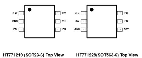 該器件在輕載時以脈沖跳躍模式工作,達到高效。HT7712xx采用SOT563和SOT23-6封裝。