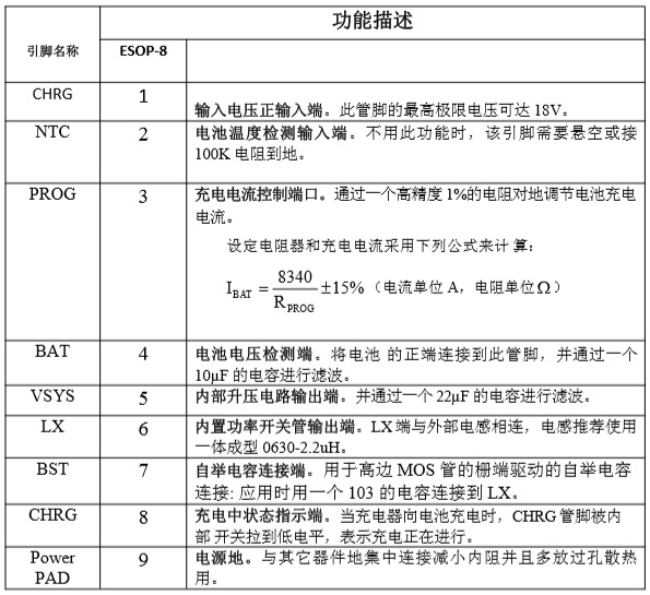 TP5220是一款輸入電源18V高耐壓具備OVP保護(hù)功能完整的升壓同步開關(guān)型2-3節(jié)串聯(lián)鋰電池充電管理芯片。其ESOP-8的封裝與簡單的外圍電路,使得TP5220非常適用于便攜式設(shè)備的大電流充電管理應(yīng)用。同時(shí)TP5220內(nèi)置、輸 入欠壓保護(hù)、輸入過壓保護(hù)、芯片過溫保護(hù)、充電電池溫度檢測、BAT 端短路保護(hù)、充電安全定時(shí)時(shí)間等功能。 TP5220具有寬輸入電壓,對電池充電分為0V充電電流、涓流預(yù)充、恒流、恒壓階段, 恒流充電電流都通過外部電阻調(diào)整,最大充電電流達(dá)1.5A(雙節(jié)充 電)。TP5220采用頻率500KHz的開關(guān)工作模式使它可以使用較小的外圍器件,并在大電流充電中仍保持較小的發(fā)熱量。TP5220內(nèi)置升壓功率MOSFET、防倒灌電路,所以無需防倒灌肖特基二極管等外圍保護(hù)。