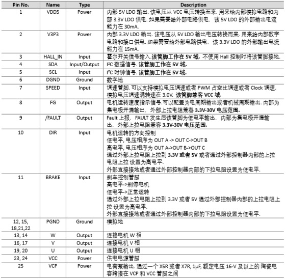 管腳定義以及管腳功能描述