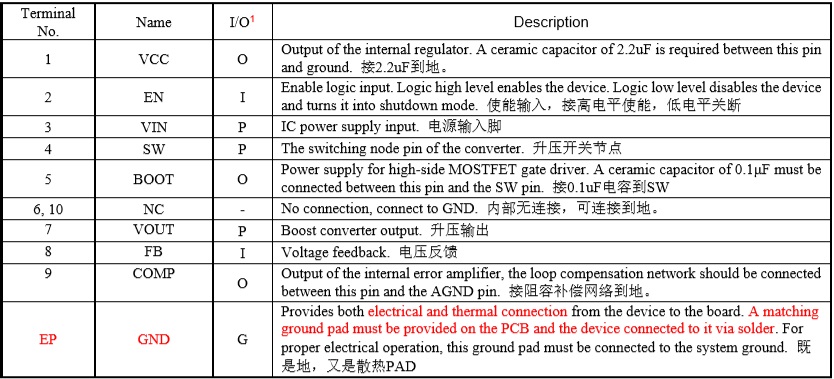 產(chǎn)品功能: 輸入電壓范圍VIN:2.7V-13V;輸出電壓范圍VOUT:4.5V-13V;內(nèi)部固定峰值電流:10A