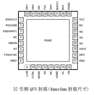 YX2045采用4mmx4mm 32引腳QFN封裝。