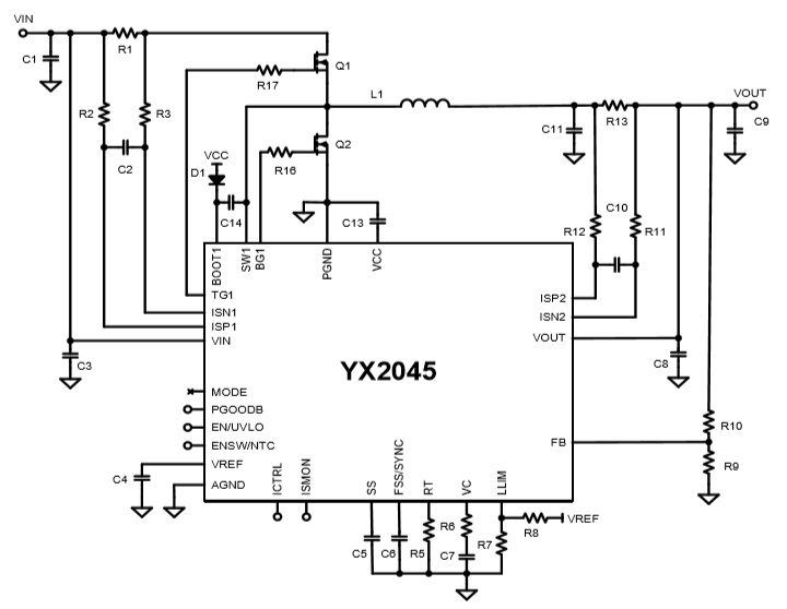 YX2045 30A大電流同步降壓CC/CV控制器;寬輸入電壓范圍:4V至45V;寬輸出電壓范圍:2V至45V QFN-32 4V-45V 4V-45V寬電壓輸入、同步降壓 CC/CV 控制器 YX2035/YX2065