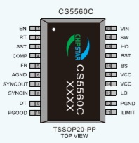 CS5560C強(qiáng)制PWM模式運(yùn)行,可以消除開(kāi)關(guān)頻率變化從而盡可能地降低EMI,而用戶(hù)可選的輕載PSM模式則可以降低輕負(fù)載條件下的電流消耗。可調(diào)開(kāi)關(guān)頻率可同步至外部時(shí)鐘源,從而消除噪聲敏感應(yīng)用中的干擾。TSSOP-20封裝。