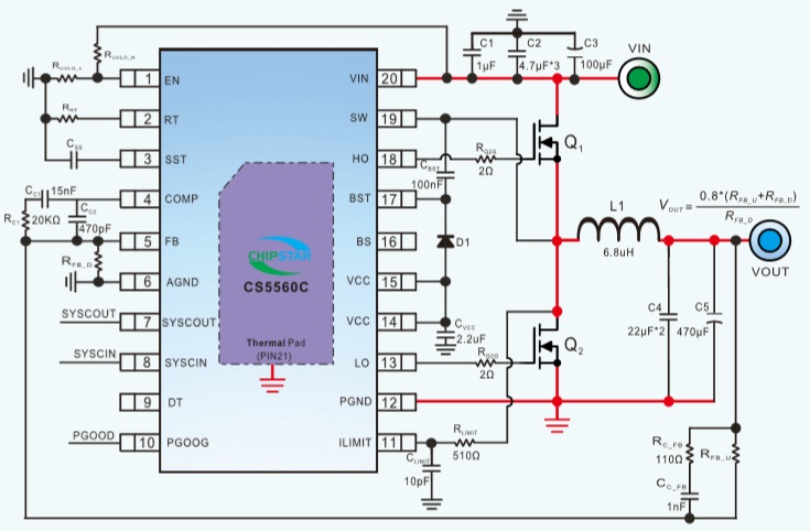 CS5560C是具有寬占空比范圍的120V同步降壓控制器,旨在對(duì)高輸入電壓源或會(huì)發(fā)生高電壓瞬間的輸入電源軌進(jìn)行電壓調(diào)節(jié),從而盡可能地減少對(duì)外部浪涌抑制組件的需求,高側(cè)開(kāi)關(guān)超短導(dǎo)通時(shí)間有助于獲得較大的降壓比,支持從48V標(biāo)稱(chēng)輸入到低電壓軌的直接降壓轉(zhuǎn)換,從而降低系統(tǒng)的復(fù)雜性并減少解決方案成本,在輸入電壓突降至5.5V時(shí),仍能根據(jù)需要以接近100%的占空比繼續(xù)工作,因此非常適用于高性能工業(yè)控制、機(jī)器人、數(shù)據(jù)通信和射頻應(yīng)用。
