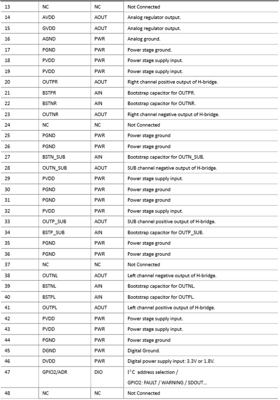 -THD+N≤0.02%@1W, 1kHz, PVDD=12V