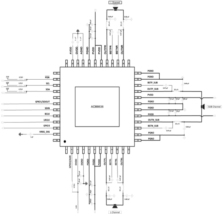當(dāng)前位置:首頁(yè)->產(chǎn)品展示->功放IC->ACM8636(內(nèi)置DSP、60W+2X30W大功率I2S輸入2.1聲道數(shù)字功放IC)