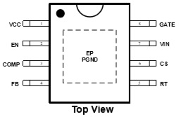 HTN5157內(nèi)置柵極驅(qū)動(dòng)器,通過(guò)GATE管腳驅(qū)動(dòng)外置NMOS。