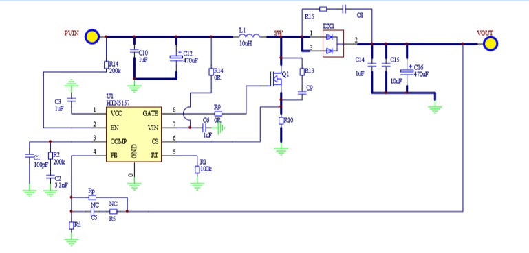 HTN5157采用峰值電流模式控制和外置補(bǔ)償網(wǎng)絡(luò),更簡(jiǎn)單更靈活的使系統(tǒng)穩(wěn)定。