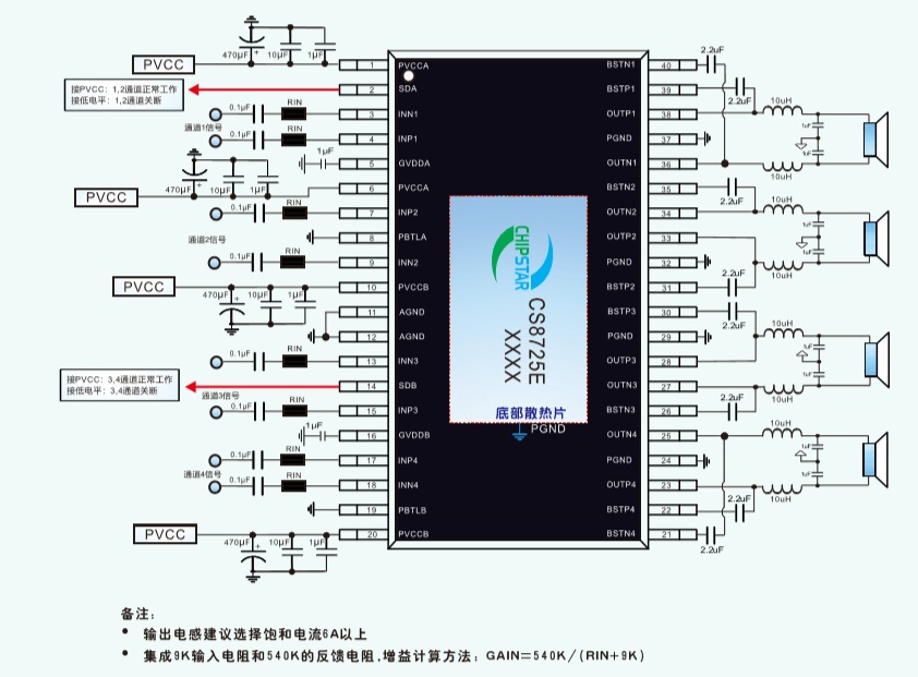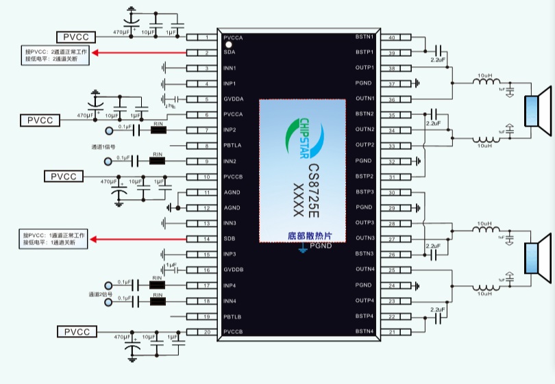 當(dāng)前位置:首頁->產(chǎn)品展示->功放IC->CS8725(4X45W四聲道D類功放IC)
